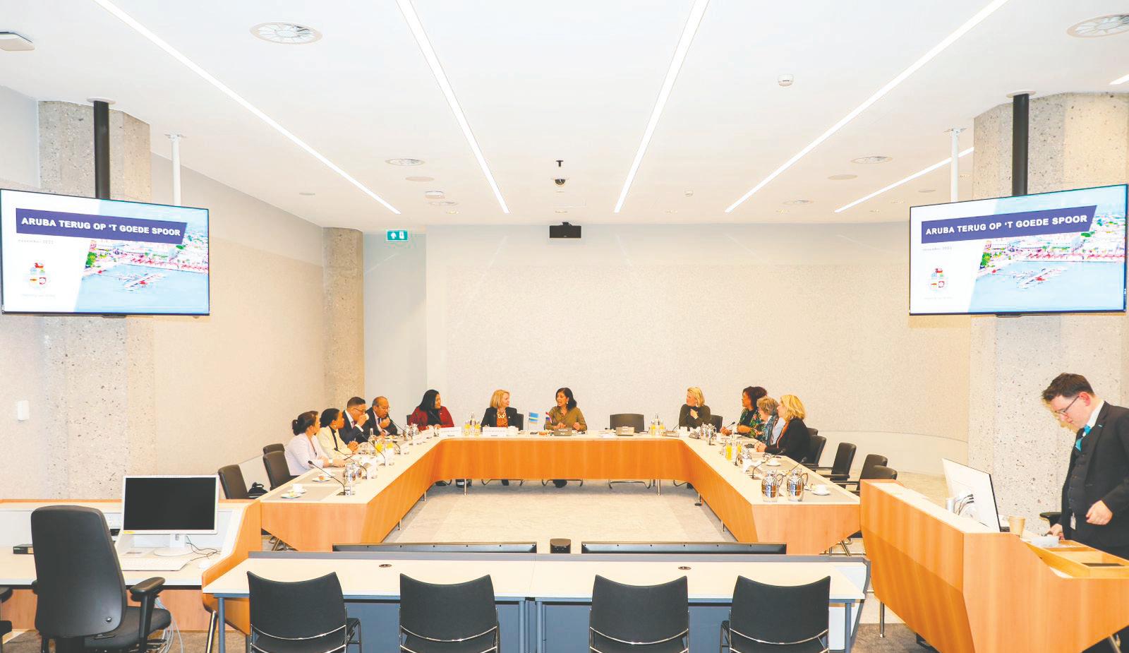 Riba e promer dia di trabou di Minister President y Minister di Finansa na Hulanda, e mandatarionan a reuni cu Parlamentarionan Hulandes cu ta miembro di e Comision Fiho di Relacion di Reino di Tweede Kamer pa asina brinda e presentacion di Aruba su finansa publico.