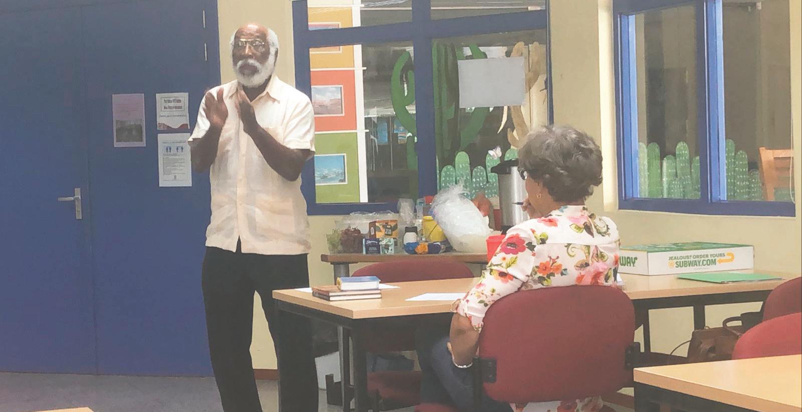 Diasabra 26 di november ultimo Fundacion Corector di Papiamento (FCP) tabatin e honor di por tabata e ultimo grupo cu a ricibi les di e linguista y docente di Spaño y Papiamento Sr. Ramon Todd Dandaré Mag. Ling. Manera custumber esaki a tuma luga na Biblioteca Nacional Aruba y FCP ta gradici BNA pa e cooperacion di semper. Ramon a cumpli e bunita edad di 80 aña e aña aki y tin 53 aña ta duna les. Pa motibo cu e tin e deseo di duna prioridad na e otro trabounan cu e tin riba su lista, el a tuma e decision di bay enfoca di awo en adelante riba, por ehempel, trabou di traduccion literario. Ramon ta keda habri pa duna sosten unda cu tin mester, pero lo exclui dunamento di les na grupo.