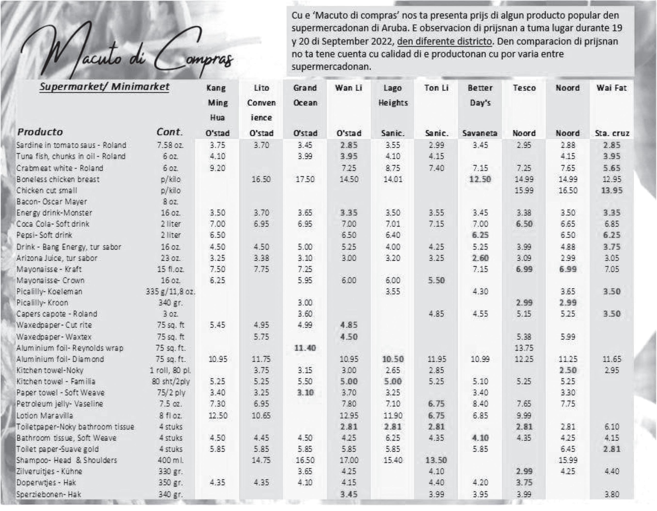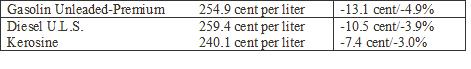 Sinembargo na luna di September nos por a wak un bahada di e prijs di petroleo riba e mercado internacional y e promedio di henter luna tabata bao di esun anterior. Esaki a haci cu prijs di gasoline, diesel y kerosin ta baha un poco mas pa e luna aki den e forma aki;