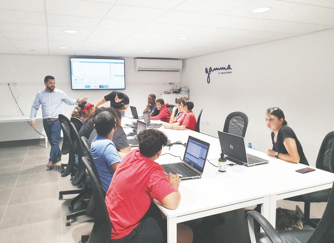 Teiry Croes di Gamma IT Solutions ta comenta “Nos ta contento di por yuda cu proyecto aki di YMCA Aruba. Nos ta gusta wak e entusiasmo di e hoben nan pa cu e mundo di IT y nos ta encurasha nan pa sigi siña mas den tur cos cu ta relaciona cu IT.”