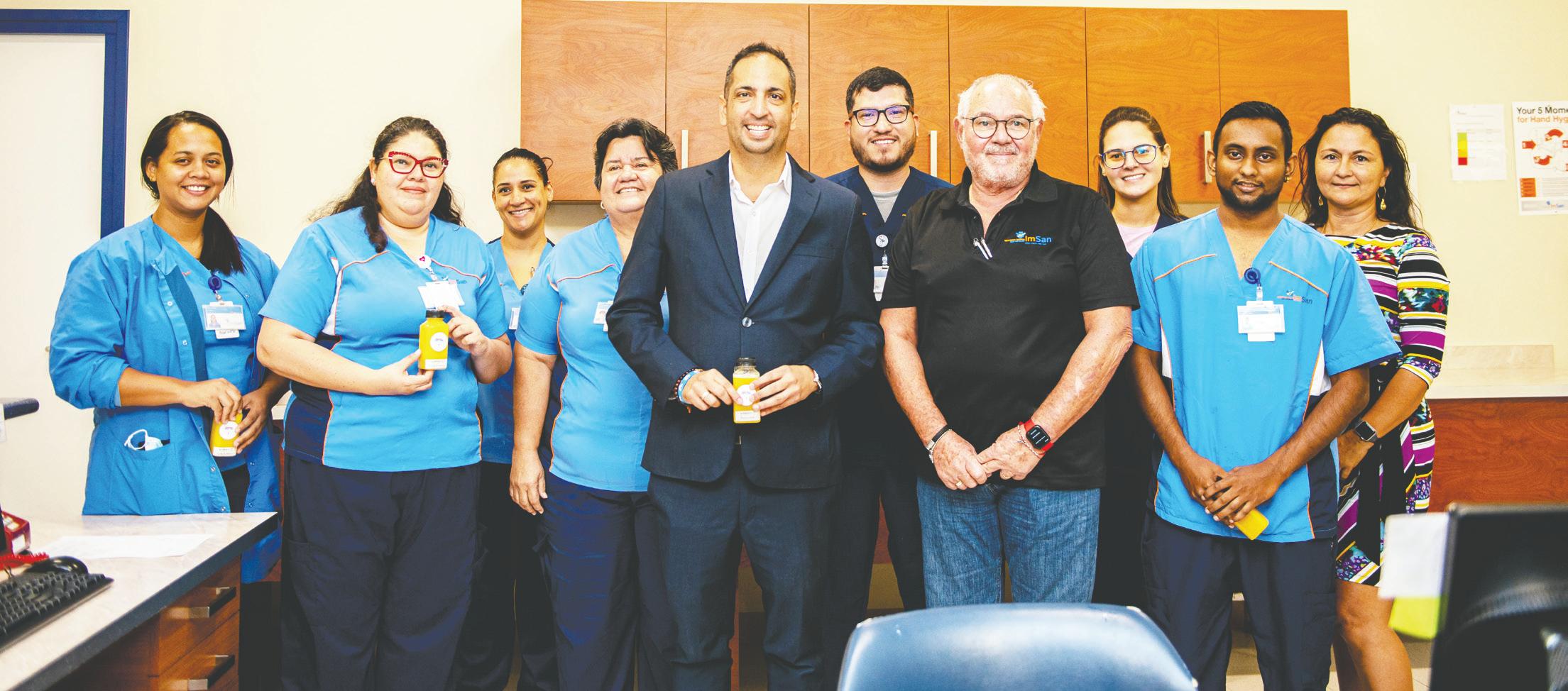 Diaranson nos ta duna aprecio na nos enfermero/a nan di Spoed Eisende Hulp (SEH), esaki no ta un dia internacional pero ya pa varios aña ta wordo celebra na HOH y na ImSan. Den conexion cu esaki Minister di Turismo y Salud Publico sr. Dangui Oduber a reparti un bebida saludabel na nos enfermero/a nan como un toke di aprecio pa e trabounan cu nan ta eherse.