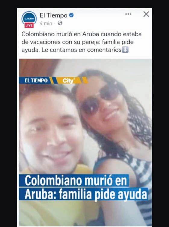 solicita ayudo na Colombia den medionan y aki na Aruba tambe pa asina contribui pa yuda cubri e gastonan pa manda su restonan bek pa Colombia. Ta trata aki di un tata di 2 yiu chikito cual a perde nan tata, Solo di Pueblo ta extendia su mas sincero palabranan di conolencia na e famia.