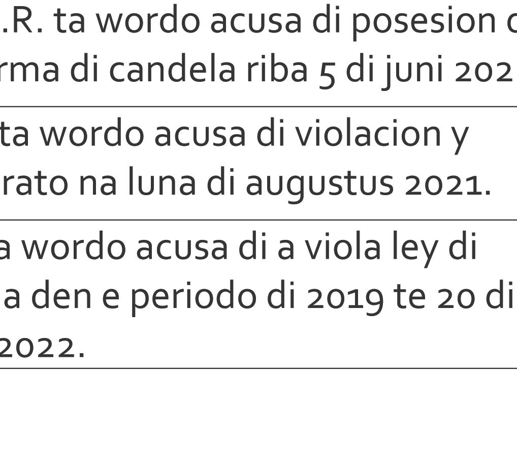 – Recien Corte di Husticia a dicta sentencia den e caso penal cu Ministerio Publico a cuminsa contra e muher Venezolano Y.M., e hombernan Venezolano A.M.D., H.M., J.S.D.