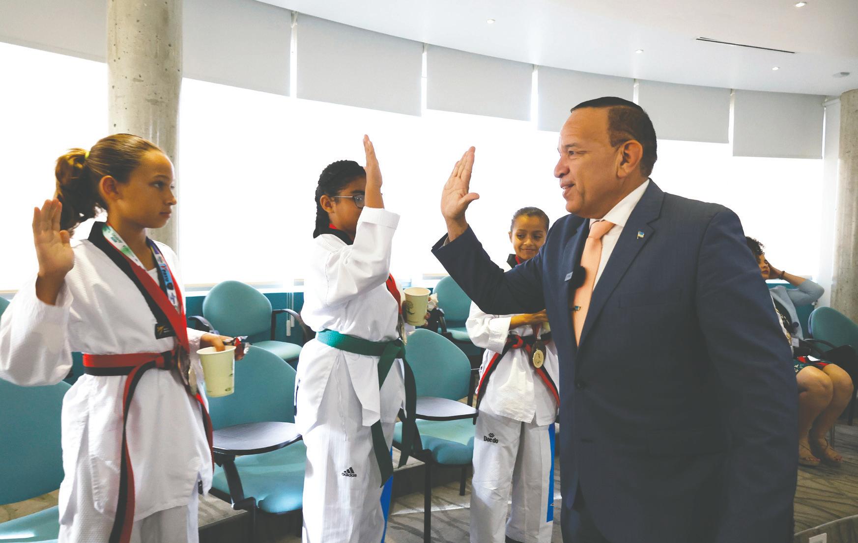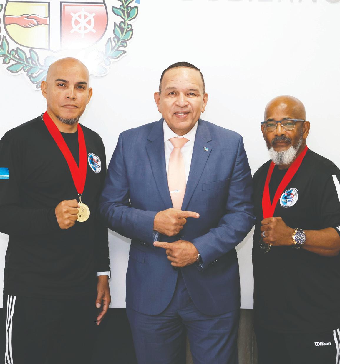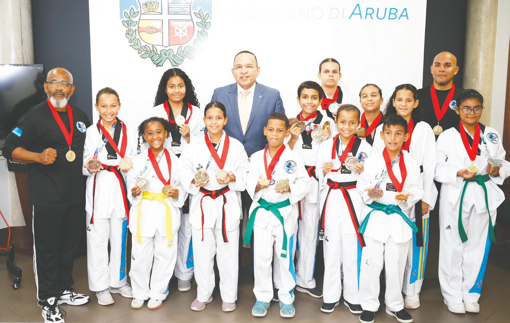 : Dialuna atardi den un esfera ameno Minister Endy Croes a ricibi atleta y coach di Tiger Taekwondo Academy cu a conkista diferente medaya den e prome Panamericano Infantil y Open G2 na cu a tuma luga den luna di october na Sogamoso, Colombia.