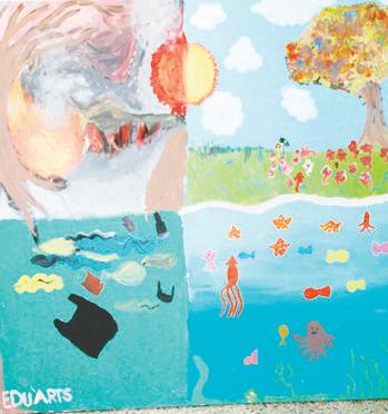 Alumnonan di EduArts cu ta haya les di pintamento di e conocido artista, Na tusha Croes, ta participa na e exposicion na biblio teca ‘Biba Natura-Lesa!’. Natusha su alumnonan a traha 3 obra grandi di 1,5 mt X 1,5 mt y e composi cion ta expresa nan idea tocante nos Naturalesa y cuido di nos Medio ambi ente. Tres obra hopi spe cial, colorido y expresivo. E alumnonan a participa tambe na Aruba Art Fair siman pasa.
