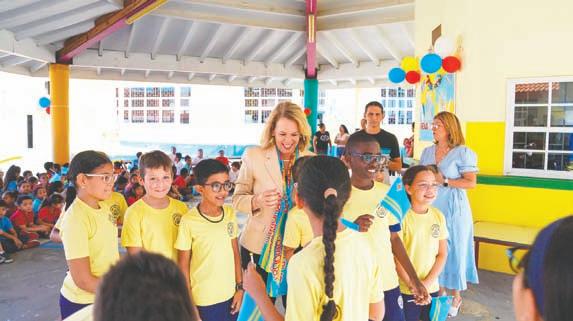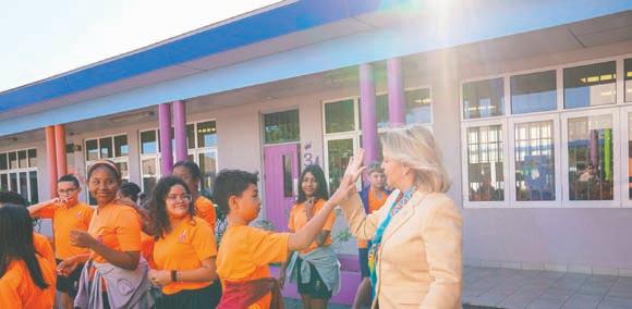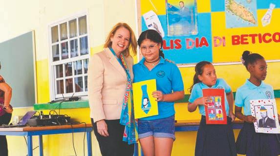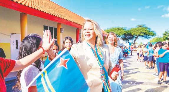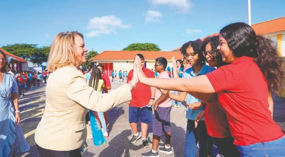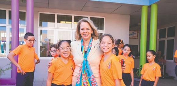 Evelyn Wever-Croes y Ministernan di Gabinete Wever-Croes ta pa bishita scolnan rond di Aruba den e siman di celebracion di Dia di Betico. Prome Minister ta bishitando e dianan aki algun scol basico no solamente pa haya e oportunidad pa conta nos muchanan tocante e bida y logronan di Betico Croes sino tambe pa biba e entusiasmo y alegria cu nos muchanan pa cu nos