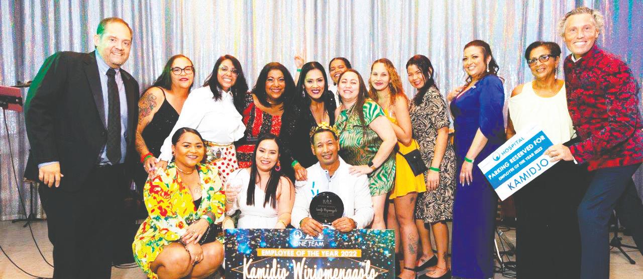 Horacio Oduber Hospital ta kere den su empleadonan y ta haya importante pa demonstra gratitud y aprecio na cada momento. Y ya pa basta aña ta saca fielmente empleado di luna y tambe merecidamente e empleado di aña. Na comienso di aña a pidi team completo di maneho pa anonimamente vota den forma di encuesta digital ken pa nan merece e elogio di wordo nombra empleado di aña 2022. Den un sala yena di coleganan durante un evento pa empleadonan, miembronan di Hunta di Directiva hunto a hiba palabra. Director Jacco vroegop a splica cu ta scoge e empleado di luna cu ta bay e “extra mile” pa su colega-, pashentnan y hospital. El a enfatisa cu cada un di nan tin un dedicacion extra pa hospital. Cu un conteo di tres e director financiero Gregory Croeze a anuncia Kamidjo Wirjomenggolo, conoci como Kami, como e empleado di aña 2022.