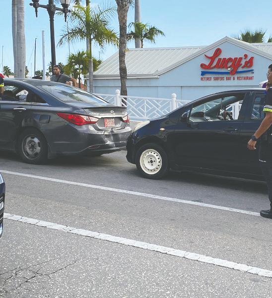 Smith Blvd na e subida di e brug banda di renaissance hotel a sosode un accidente unda un accidente caminda cu chauffeur den un toyota vitz no a regula su velocidad y distancia a dal tras di un hyundai sonata. E impacto a pone cu un dama na estado sinta dilanti cu su saftybelt esaki a pres su bariga.