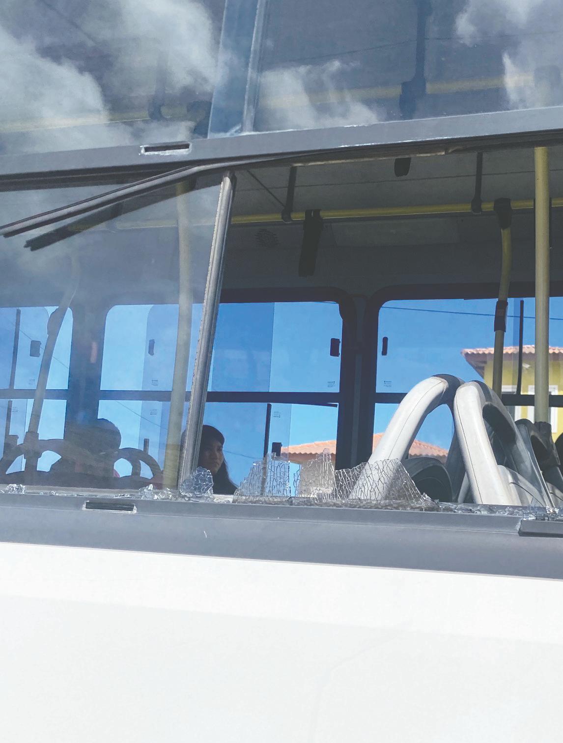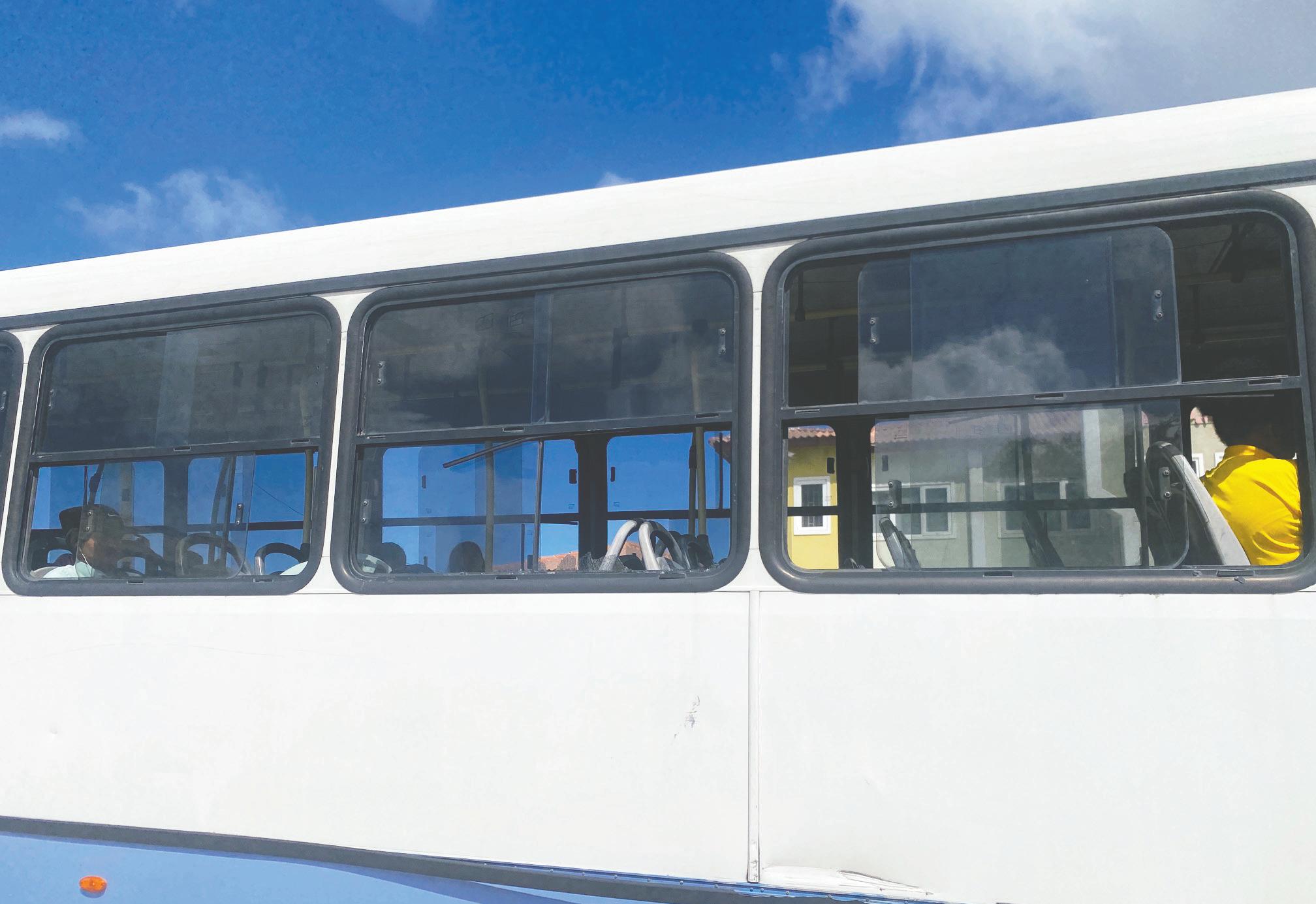 pasando dilanti Aventura Snack bayendo zuid un mucha baldadi dilanti e snack a manda un piedra y a destrui un bentana di e bus. Afortunadamente ningun hende a resulta herida. Polis a tuma e keho.