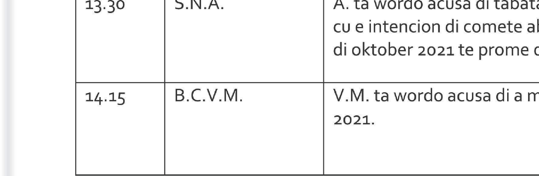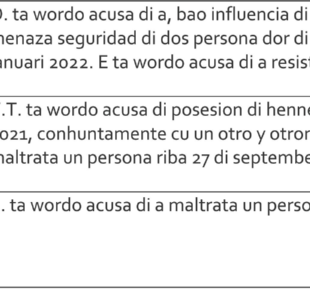 pa justicia relaciona cu menasa, tanto recherche y polisnan atento di distrito 1 pasando den Havenstraat a topa cu e