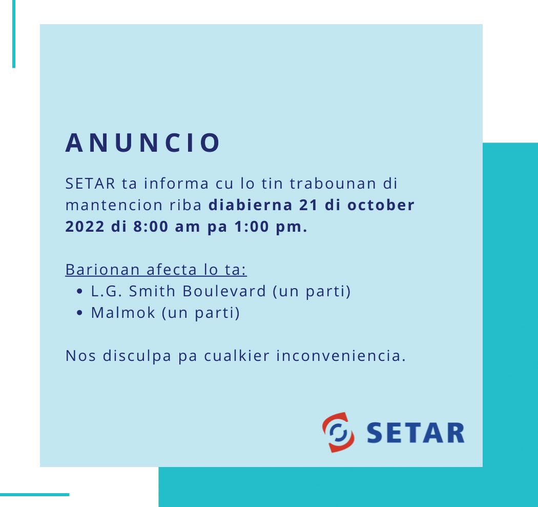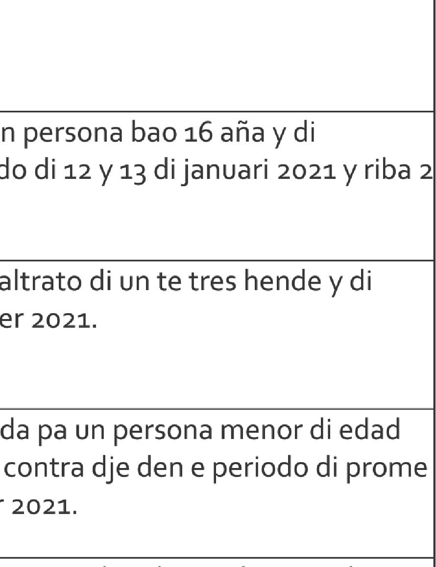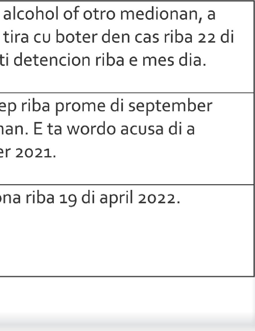 Ta invita pa asisti na acto di condolencia y ceremonia di despedida cu lo tuma lugar diamars 25 di oktober 2022 for di 2’or pa 4’or di atardi na Misa Birgen di Fatima na Dakota. Entiero lo tuma lugar na Santana Pastoor De Vries na Santa Cruz. Nos ta pidi disculpa si den nos tristeza nos a lubida di menciona nomber di un of mas famia.