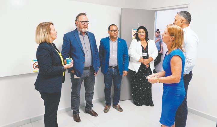 ORANJESTAD - E siman aki un delegacion consistiendo di Prome Minister Evelyn Wever - Croes, Minister di Labor, Energia y Integracion Glenbert Croes, Parlamentarionan y profesionalnan a ricibi un tour di e facilidad di Enseñansa pa Empleo (EPE), pa mira con e proyecto ta avansando. Kwartiermaker di EPE sra. Sabine de Groot a splica di e avansenan interesante di EPE.