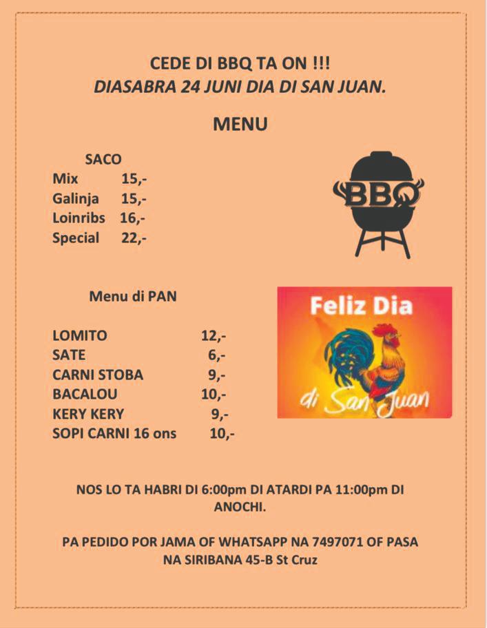 Premionan ta wordo anuncia dia 15 di Augustus 2023. Tira e coupon aki den buzon na oficina di Solo di Pueblo na Sta Cruz 110, solamente entre 2or di atardi cu 4or di atardi.