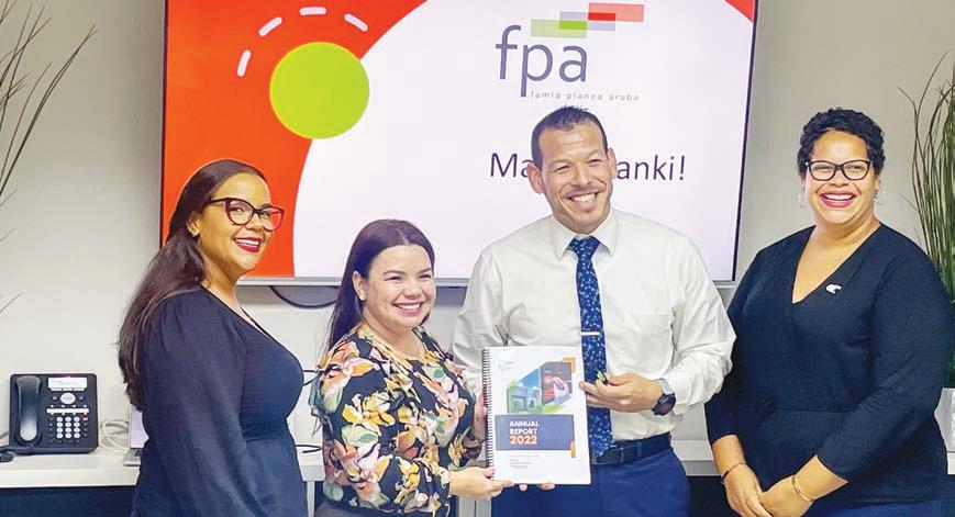 Recientemente, Minister di Husticia y Asuntonan Social Sr. Rocco Tjon, a bishita Famia Planea Aruba (FPA), caminda a ricibi e rapport anual pa aña 2022 y a haya un presentacion amplio di tur e trahadonan como tambe di e hunta di maneho. E Mandatario a keda sumamente satisfecho di a wak e estadisticanan, mirando cu FPA a brinda servicio na mas cu 17mil hende den aña 2022, y ora ta wak e productonan cu nan a brinda, ta papia riba di 96mil producto. Pues, un fundacion cu ora wak su historia, por bisa cu nan a sa di inova y restructura pa asina adapta na e demanda di comunidad, pero no solamente di nos comunidad pero tambe internacionalmente.