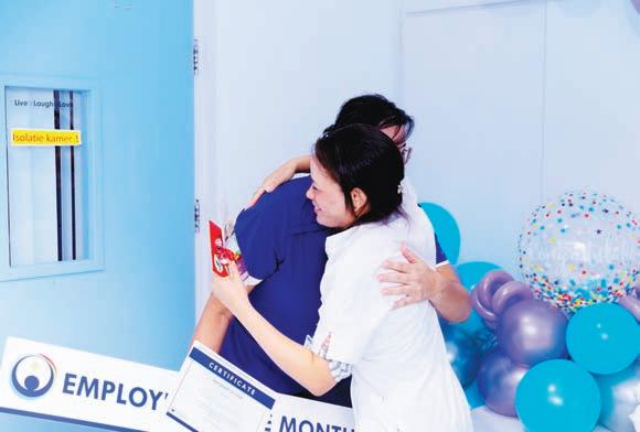 Durante e recorido coleganan a core decora y prepara pa su yegada bek. E no a sospecha nada y a keda masha emociona di a mira tur colega, famia y miembronan di Hunta di Directiva hunto ta grita ‘surprise’! E dia aki, e dia cu ela sali empleado di luna na HOH, ta sigur un dia cu nunca elo lubida.