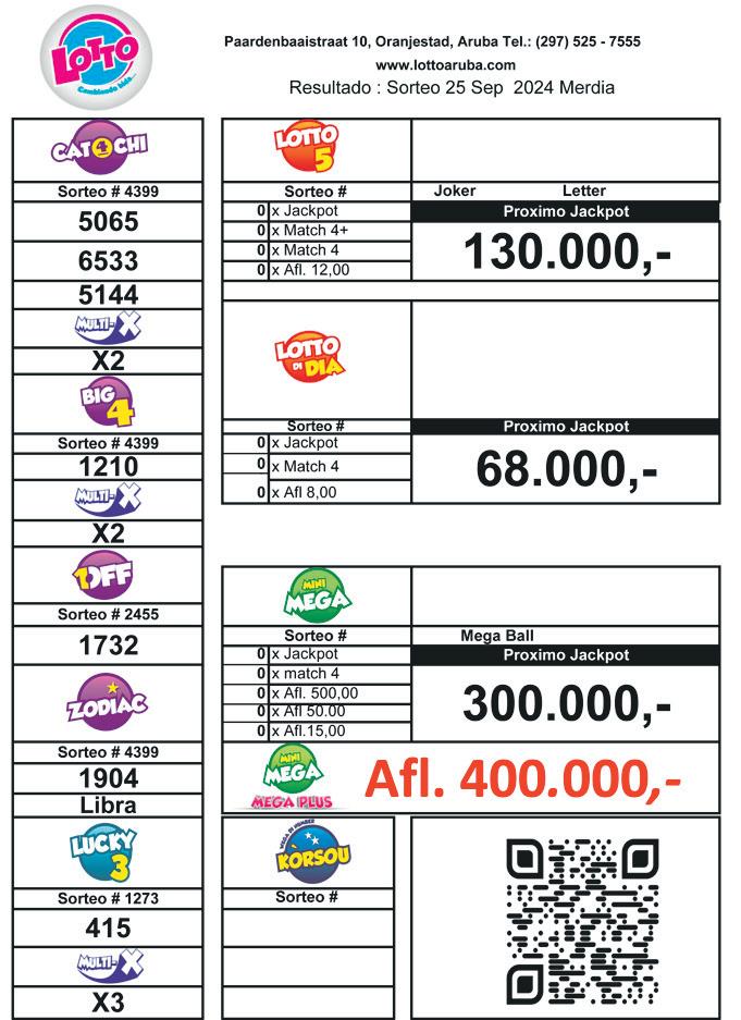 Lotto, E Loteria di Aruba tin diferente wega, Catochi, Big 4, 1-OFF, Zodiac,