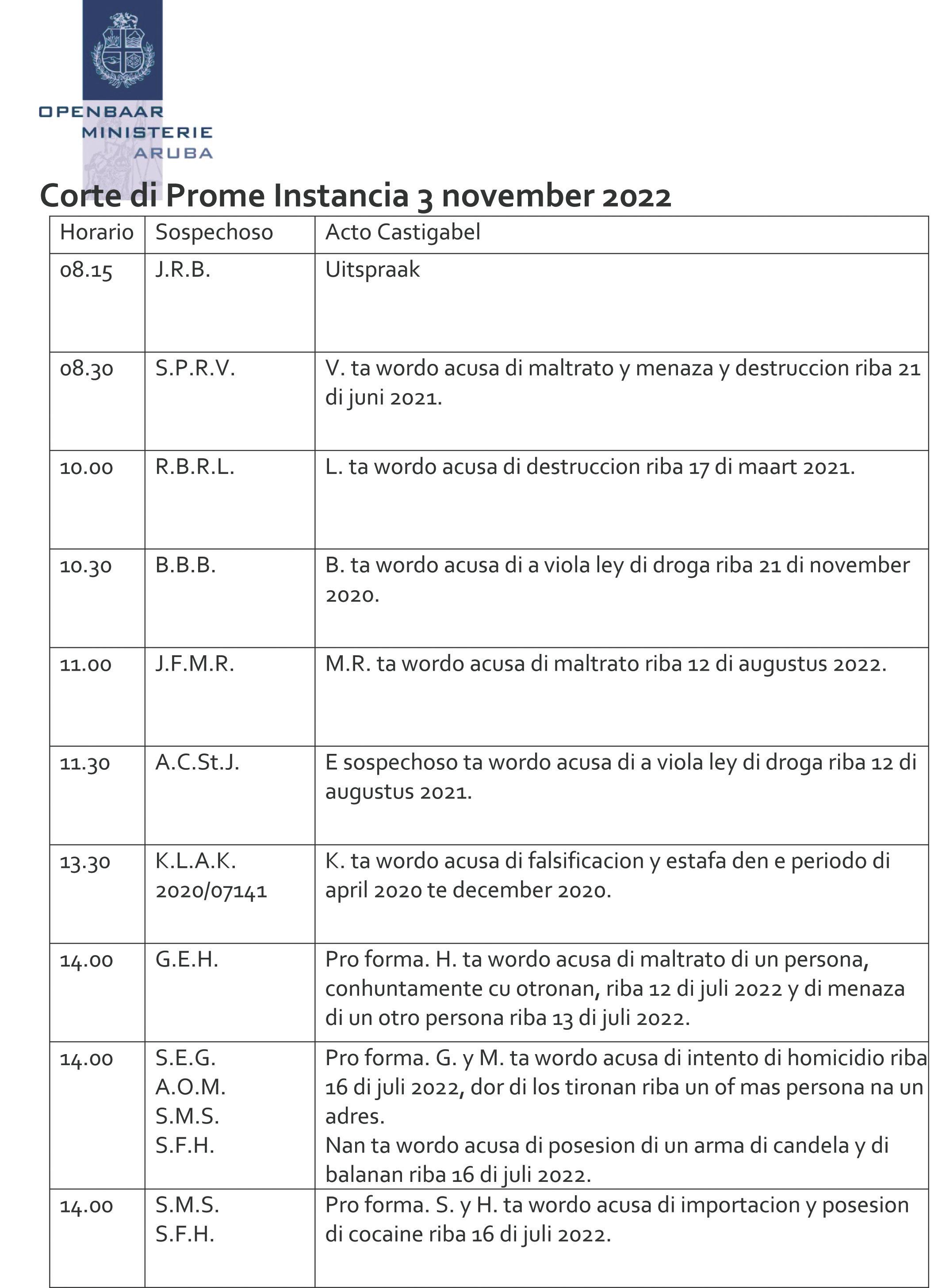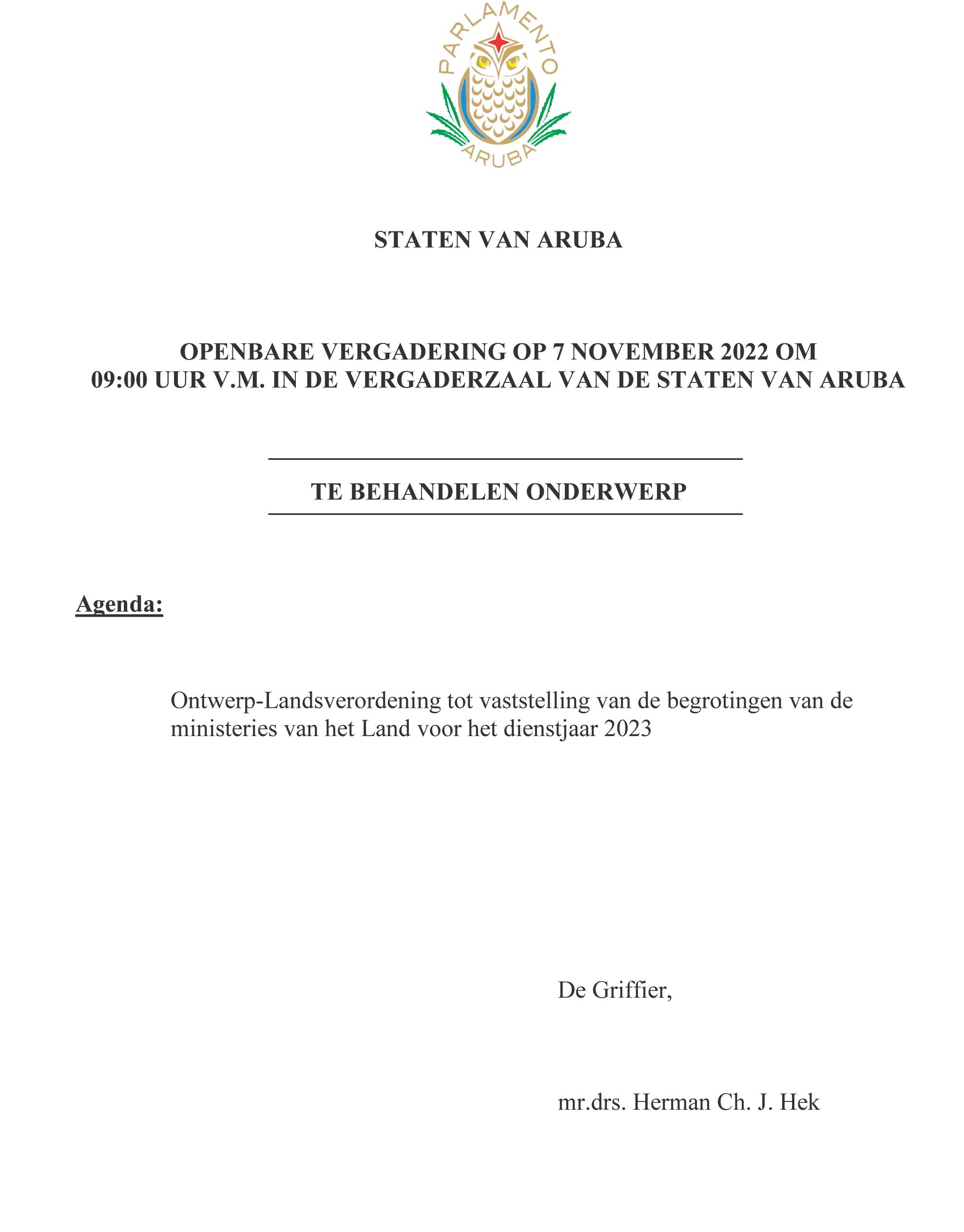 ORANJESTAD, ARUBA, 2 NOVEMBER 2022 –