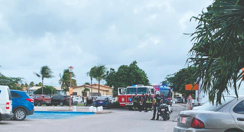 Diamars atardi pasa di 4'or algun rato prome cu Banco di Caribe ta cera pa e dia, Brandweer ta sali direccion e banco pa motibo cu huma tawata sali for di e pisonan di ariba.