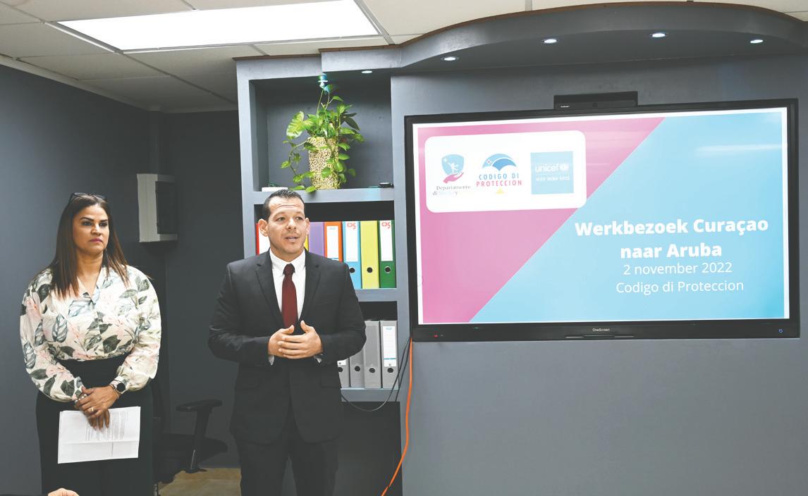 Diaranson mainta, Minister di Husticia y Asuntonan Social Rocco Tjon, tawata presente na BRA pa asina atende e reunion di Codigo di Proteccion entre e delegacionnan di Aruba y Curaçao. Ta trata di un proyecto importante cu a inicia na 2019 for di e Sociaal Crisis Plan, cu e meta pa brinda mas siguridad na nos muchanan. Di parti di Ministerio di Husticia y Asuntonan Social nos ta sumamente contento