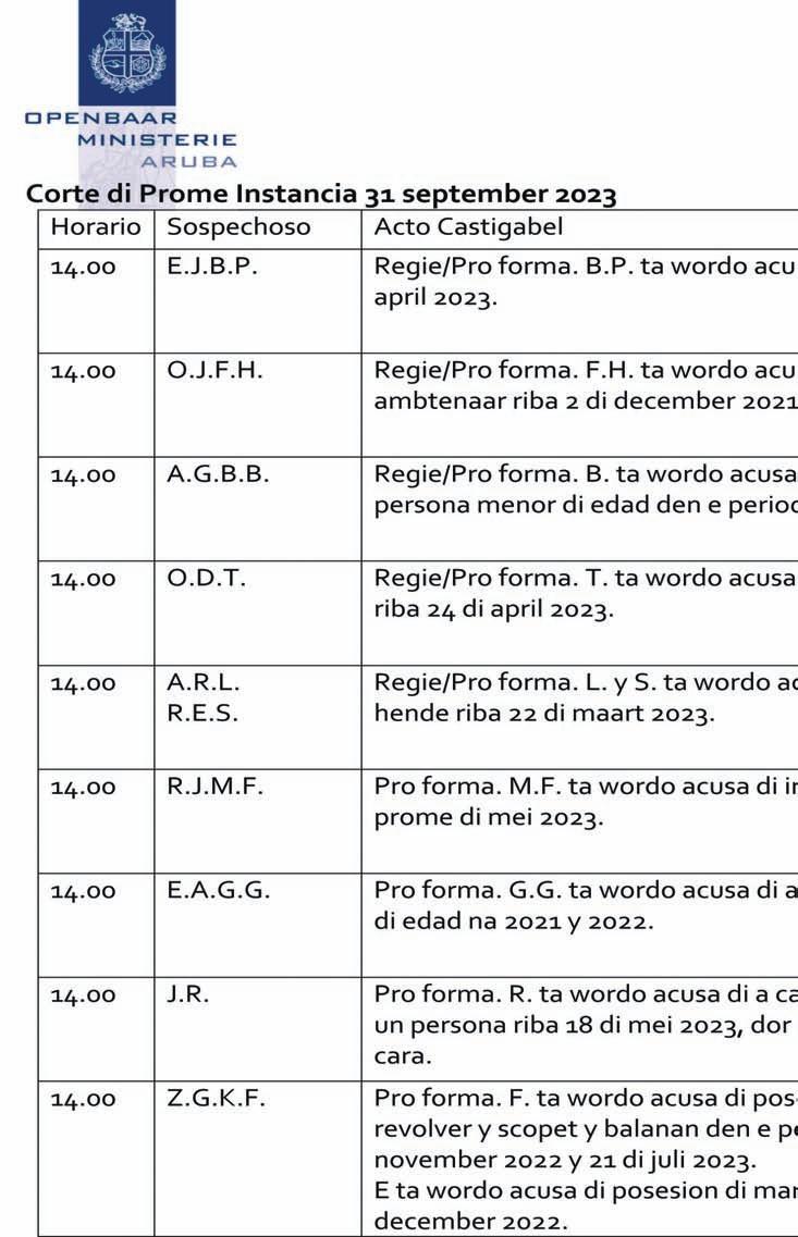 VALIDO TE DIAHUEBS 31 DI AUGUSTUS 2023, 18:00 ORA