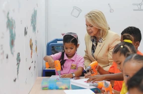 Den conexion cu e proyecto di Edutech, diaranson 4 di September mainta, Prome Minister Evelyn WeverCroes a bishita Colegio Felipe B Tromp pa asina por admira e "STEAM