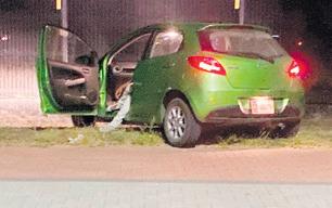 bala mientras cu e auto MG si. Dos ocupante di e MG a sufri herida di bala mientras cu di e Mazda, E.O. y E.C.A. a resulta herida door di e impacto di accidente. Ta asina cu e MG a bay dal contra e Mazda y e Mazda a sigui bay dal contra un palo di luz.