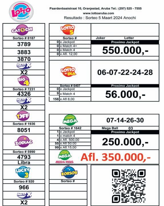 Cuidao cu jaloezie, p'esunnan cu tin pareha stabiel. No lo ta mal idea pa gasta placa riba paña. Trabao no lo duna bo chens pa bo ta laaf. Lo bo por comete algun exceso sin cu e curpa nota esey. Number di suerte: 83, 72, 6