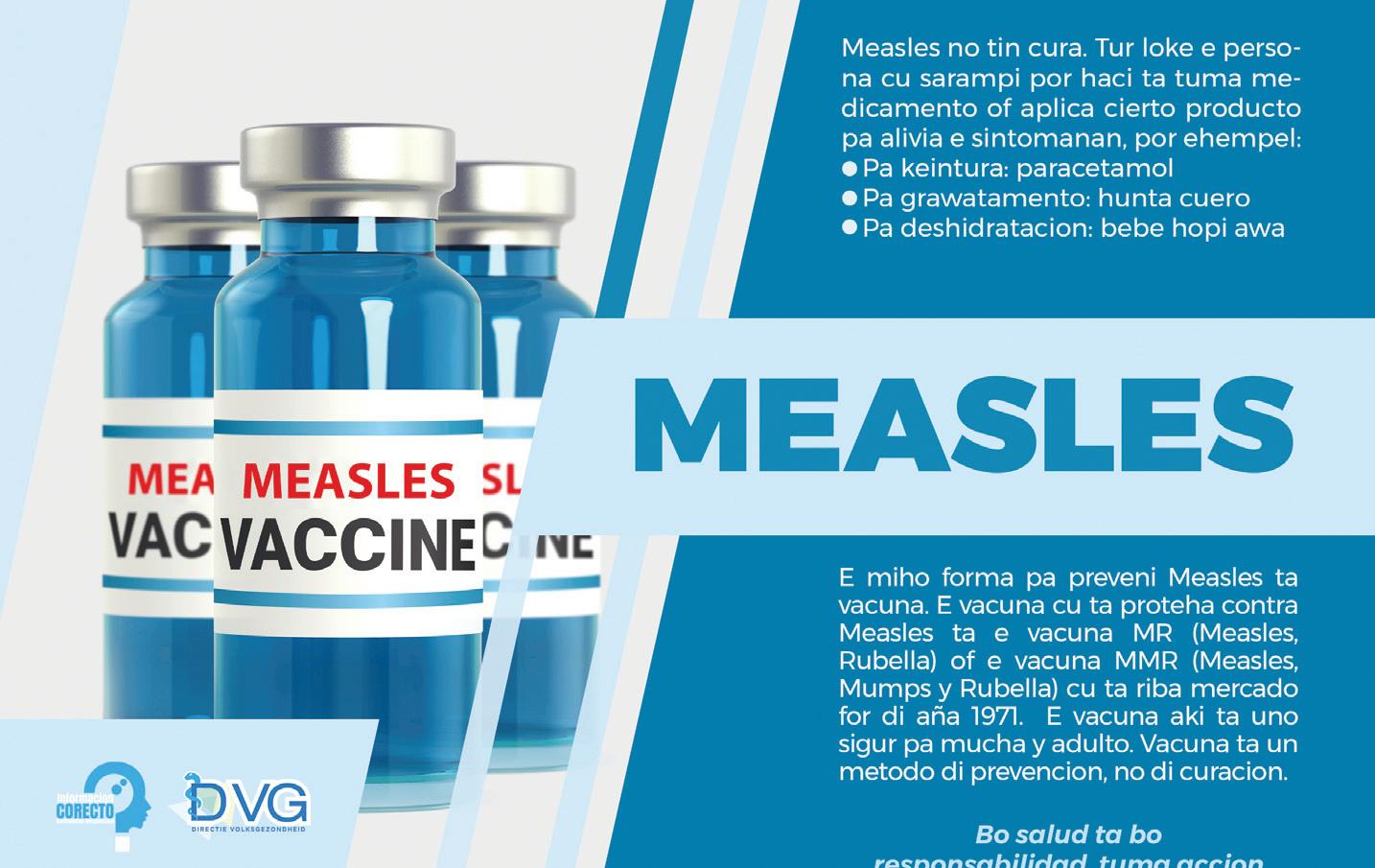 contra Measles. Pa mas informacion like nos Facebook page Directie Volksgezondheid DVG Aruba, Follow nos riba Instagram directie_volksgezondheid_aruba, subi nos website www.dvg.aw, yama nos na 5224200 of mail nos na servicio@dvg.aw