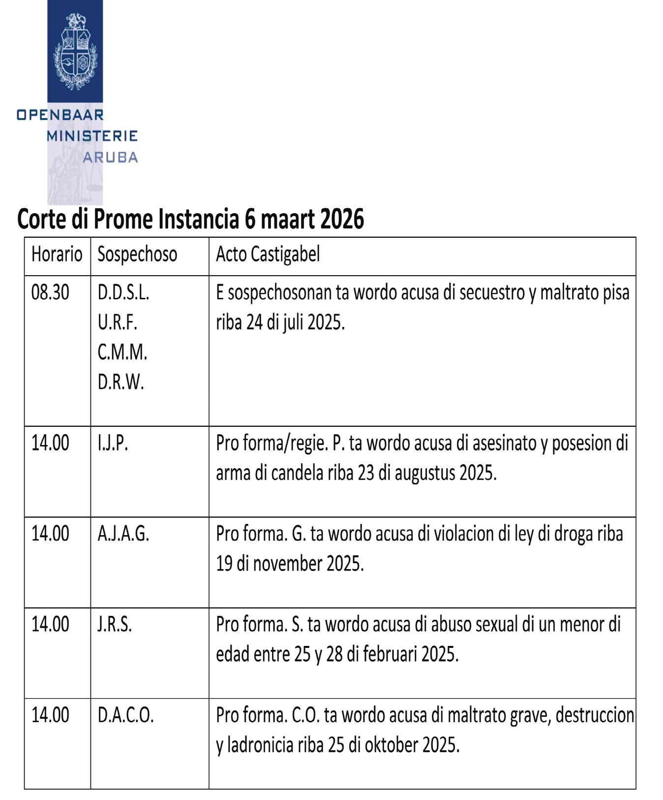 Ta invita n’e acto di entiero cu lo tuma lugar Diahuebs 5 di Maart 2026 na Misa Cristo