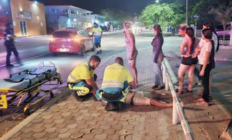 Polis a yega y ta mira un hende homber na banda di caminda benta. Ambulance tambe a presenta y mesora a cuminsa duna asistencia.
