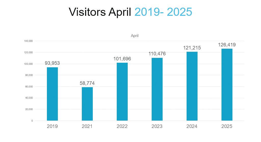 ESTADISTICA CONFORME ACTUALISACION DEN E INDUSTRIA DI TURISMO: VOLUMEN (“STAYOVER”) CU RESULTADO POSITIVO ADICIONAL DI 4.3 % DEN APRIL 2025 COMPARA CU APRIL 2025 Conforme e demanda por bai mira tambe cu e aerolineann lo sigui expande capacidad y asina permitiendo nos captura e demanda. Den april 2025, Aruba a ricibi un total di 126,419 huesped “stayover”, esaki ta un crecemento di 4.3%, si compara cu april 2024, unda a ricibi 121,215 huesped “stayover”.