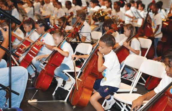 Laura Wernet Paskel, ST. Paulus School, Graf von Zinzendorf Basisschool y Aruba Adventist Academy. E alumnonan di klas 3, 4, 5 y 6 ta ricibi un bes pa siman les door di nos propio musiconan, unda cu nan ta siña toca diferente instrumento entre otro, viool, cello, trompet, trombone, dwarsfluit y clarinet.