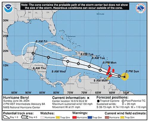 Horcan Beryl, un poderoso ciclon di categoria 4, ta drentando Caribe actualmente.