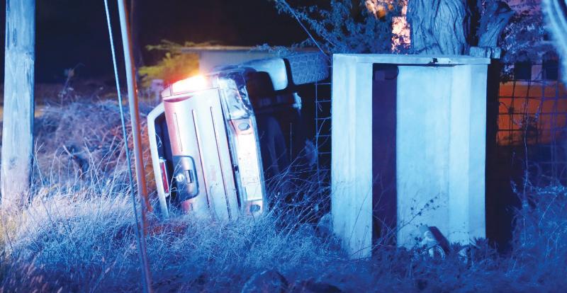 Polis a yega y ta topa cu un Nissan Frontier color cora benta ariba su banda, pazuid di caminda.
