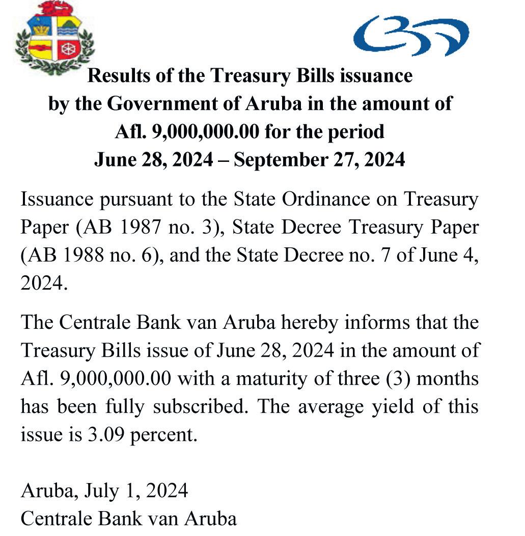 Na final di dia Parlamento di Aruba a aproba e Presupuesto Supletorio 2024 cu 12 voto na fabor y 9 contra y asina a duna aprobacion pa e bon maneho cu ta ser hiba na fabor di Pueblo di Aruba. E aprobacion aki ta significa cu Gobierno di Aruba tin e mandato pa entre otro, haci e pago pa loke ta trata 11.7% di “indexering” pa e empleadonan publico, aumento di entrada pa e trahadonan di fundacion, aumento di pensioen y onderstand.