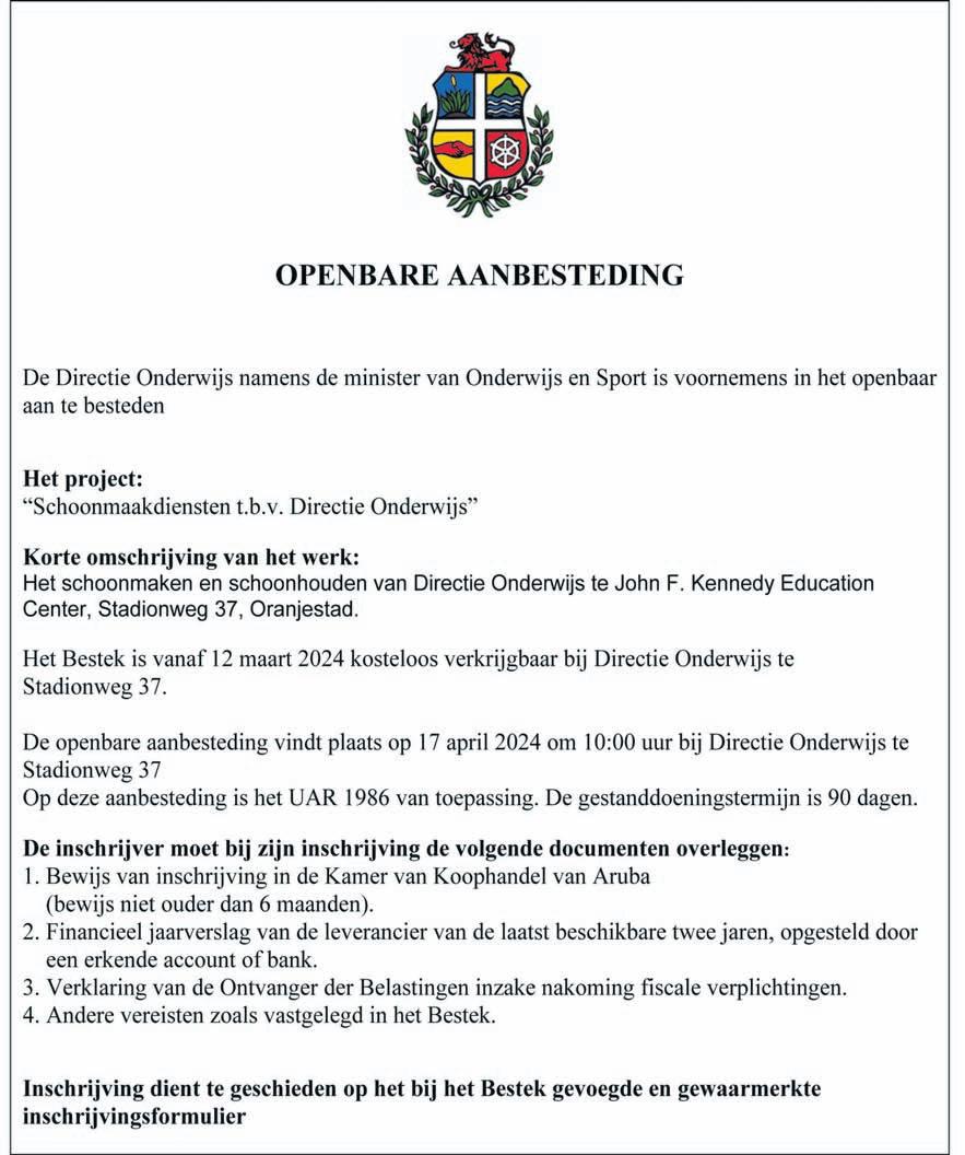 ta e stichting di mas grandi di Aruba actualmente. Despues di a consulta cu Dienst Uitvoering Onderwijssubsidies (DUOS), e mandatario di Enseñansa a confirma cu SKOA ta bin na remarke pa haya minimo tres (3) smw'ers. Banda di esaki, a dialoga tocante otro peticionnan cu nan a haci enuanto staf administrativo y werkster.