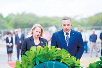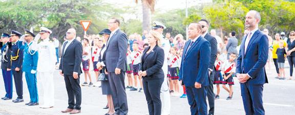 Comandante Koninklijke Marechaussee, Korpschef di KPA hunto cu Comandante di Arumil y Hoofdsteunpunt di Kustwacht Aruba tambe a pone un krans. Den nomber di e hobennan di Aruba, e muchanan di Sportvereniging River