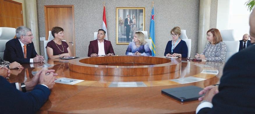 Presidente di IOC conhuntamente cu e comision, lo bay tin diferente encuentro na Aruba. Prome Minister a splica cu e tipo di encuentronan aki ta yuda hopi y ta trece perspectiva, oportunidadnan y ta mustra kico mester pa mehora den deporte. Esaki ta e prome biaha cu Aruba ta haya bishita di sr. Bach, cual ta algo grandi pa Aruba y ta muestra cu Aruba ta riba mapa internacional. Durante di e reunion a gradici sra. Nicole Hoevertsz pa e trabou cu e ta haci pa deporte cual ta orguyoso di dje.