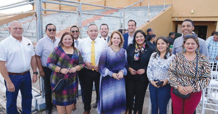 nos Evelyn Wever-Croes, Minister President, Minister Endy Croes y presentante di Bohama cual ta e compania cu lo realisa e trabou di renobacion den 8 luna. Durante discurso hiba a accentua cu e stadion ta rico na historia y cu pa hopi hende e tin un lugar importante den nan memoria. Sigur nos no por lubida cu den e stadion aki, na aña 1976, nos a hisa Aruba su Bandera y a canta y toca nos Himno pa prome biaha. Mas cu tur cos a keda subraya con importante e stadion ta pa e ramonan di deporte