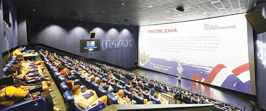 : Dialuna ultimo, en conexion cu vivienda pa studiante na Hulanda, Ministerio di Enseñansa a organisa un anochi informativo pa e alumnonan di examenklas di Colegio Arubano, Colegio Nigel Matthew y Educacion Profesional Intermedio (E.P.I.) na The Movies IMAX na Gloria. A traves di e pantaya grandi di The Movies IMAX a brinda e alumnonan informacion amplio di alohamento (huisvesting) na Hulanda.