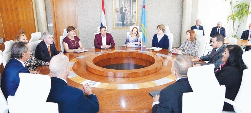 Recientemente den Conseho di Minister tabata presente Presidente di Comite Olimpico Internacional / International Olympic Committee (IOC) sr. Thomas Bach. Prome Minister Evelyn Wever - Croes a expresa cu ta sumamente honra cu sr. Bach su bishita y henter e comision cu ta na Aruba.
