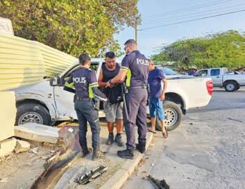 Na yegada polis a un topa cu un pickup Greatwall e parti dilanti hinca den un cura di cas.