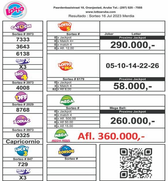 Premionan ta wordo anuncia dia 15 di Augustus 2023. Tira e coupon aki den buzon na oficina di Solo di Pueblo na Sta Cruz 110, solamente entre 2or di atardi cu 4or di atardi.