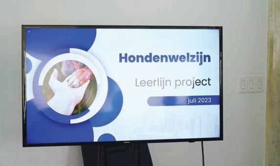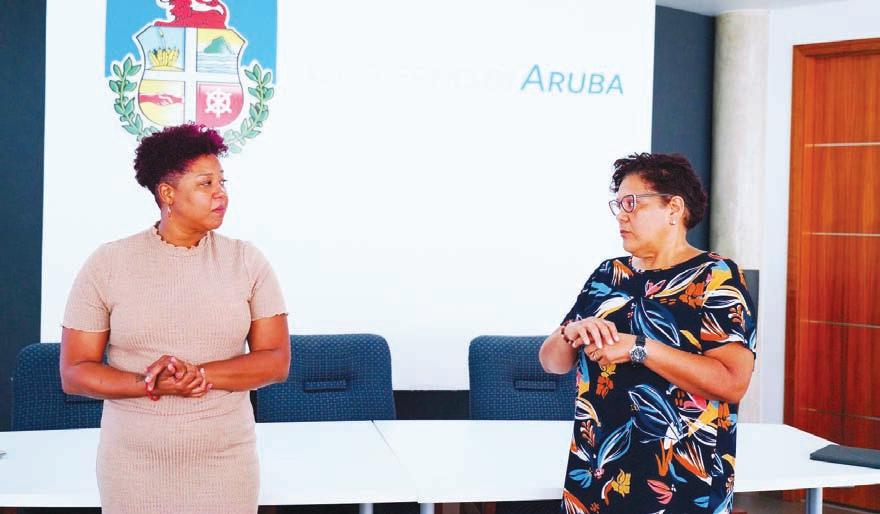 Sra. Jumira Spier, Sra. Audry Vasques, Sra. Mirscha Winterdal, y Sr. Henry Barrera tabata presente unda a presenta e material di educacion tocante bienestar di cacho na Minister Endy Croes, Minister Ursell Arends y directora di Departamento di Enseñansa di Aruba (DEA) Sra. Anne Marie Proveyer.