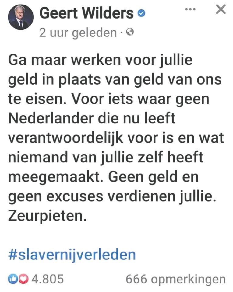 E politico Hulandes Geert Wilders tabata critico riba e fecha oficial di 19 december, unda Gobierno Hulandes lo pidi oficialmente disculpa.