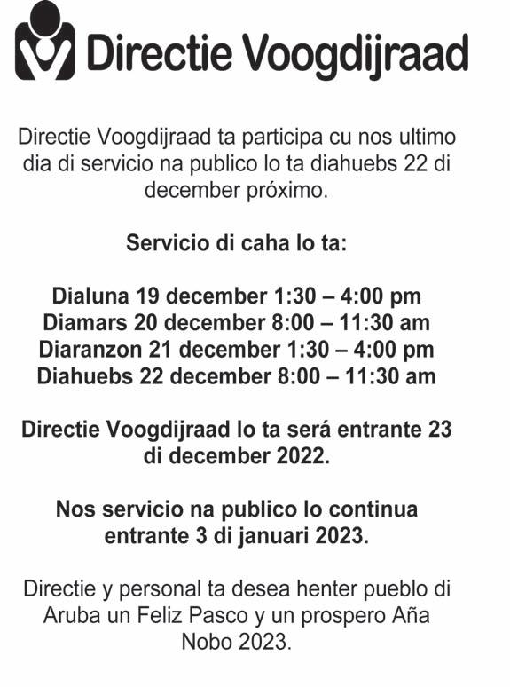 Demas famia ta invita tur amigo y bisinja y conocirnan pa asisti na acto di condolencia y entiero cual lo tuma lugar diamars 20 di December 2022.