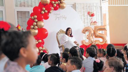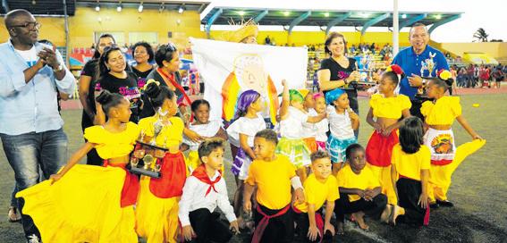 ORANJESTAD: Diabierna mainta, Arco Iris Kleuterschool a celebra 35 aña den enseñansa di cabesante di e scol, Sra. Nelly Orman - de Cuba. E mainta festivo a inicia cu e bunita himno di Arco Iris Kleuterschool canta pa e alumnonan. Sigui pa speech di representante di DPS Sra. Morela Dirkz, Staffunctionaris Primair Onderwijs Sra. Marylou Maduro y presidente di comision di mayor Sra. Sabrina Sonensein cu a hiba palabra n’e ocasion special aki.