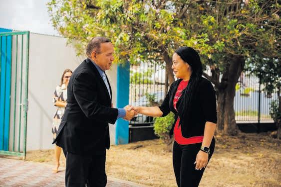 Minister Endy Croes y Minister Dangui Oduber. Concluyendo, Minister Endy Croes a indica cu esaki ta e prome scol cu ta bishita y den transcurso di e simannan nos dilanti lo bishita diferente scol pa hiba e mensahe pa come saludabel y e importancia pa haci actividad fisico.