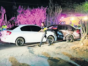 Polisnan na yegada mesora a tuma nota cu ta tratando di un accidente basta serio, entre 3 auto.