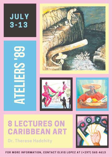 Cuminsando Dialuna 3 di July di 7 - 9pm na Ateliers '89 Punto Di Beyas Arte Aruba. Cada tanto tempo Ateliers '89 ta organisa un workshop di tal caliber. Un master class den arte contemporaneo di Caribe y con esaki ta integra den e arte y su comercialisacion grandi internationalmente. Ta pesei mes ta un momento hopi importante cu nos ta pasando aden. Juist pa e moti bo aki nos ta urgi tur arista pa bin participa na e workshop aki. Pa bo mes por evalua y egrandese bo obra actual di arte riba e nivel